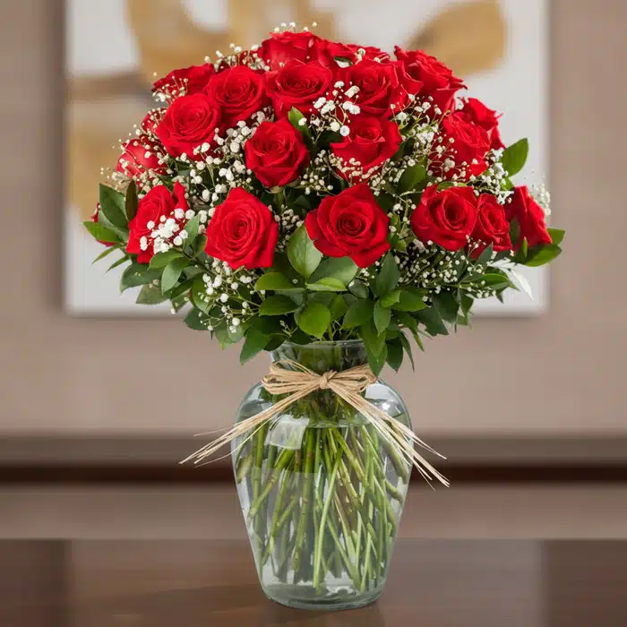 Jarrón con 24 Rosas