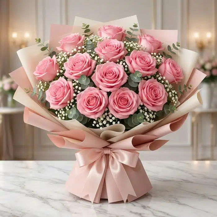 - 12 rosas rosadas